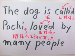 そして本来は Pochi と loved の間に、英語でいちばん大事な基本技、関係代名詞がありました。この関係代名詞を呼び戻して、本来の文を再現してみましょう。