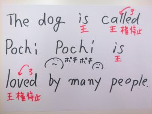 サトル君が並べた文の王関係です。王関係のチェックは英語学習の基本中の基本、いちばん大事です。これをやらないと時間さいても英語力はつきません。