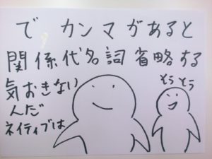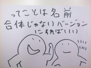 そうです、名前合体である必要はないのです。こうした英語だけでネイティブ思考していくことが英語力です。サトル君の英語力の伸びがうれしそうな、哀愁の英語コーチです。