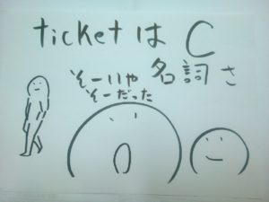 ticket は C。そうです、名詞の U と C です。動詞の自動詞、他動詞が日本人の英語習得の大きな壁になっていますが、この名詞の U と C も大変です。自動詞、他動詞と同様に、この U と C も日本人は十分に習ってはいません。授業で触れられてはいるでしょうが、不十分極まりないです。