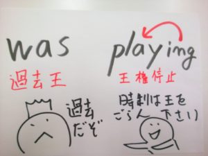 was は過去王です。時制は過去です。playing は ingマンにより王権を停止されています。カスです。カスは時制に関与しません。