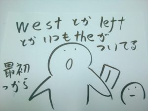 west, east などの方角や、right, left などの方向にいつも the がついているのが気になるようです。いつも最初からついています。