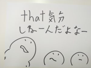 おおっと、ここで本来この日本人ふたりにまったく関心のない、謎のネイティブ男の乱入です。that による王権停止の気分ではないそうです。