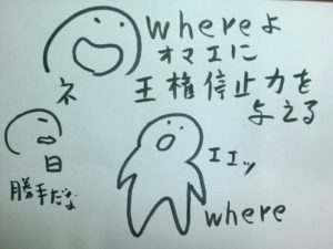 お、登場した where君 いちばん前にいくぞ!とはりきってます。疑問詞はなぜか