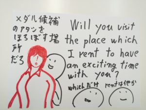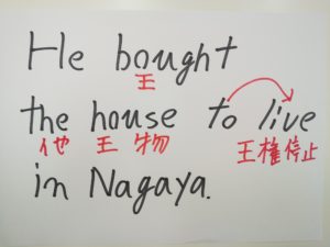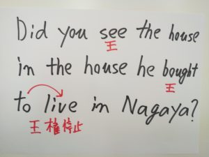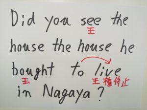 お、他王物があります。これならネイティブの心に浮かぶパターンです。ではこの文でふたつの文を合体させましょう。