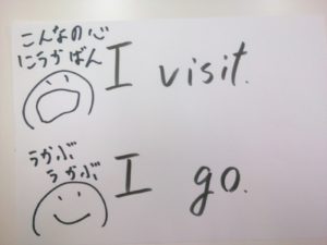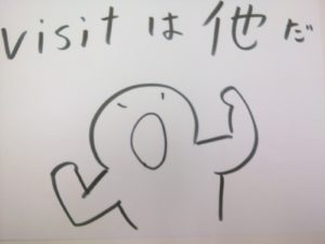 visit は他王バージョンでネイティブの心に浮かぶ動詞です。他王バージョンなので、すぐ直後に別物体がネイティブの心に浮かんでしまいます。なぜ?と聞いても