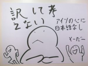 お、サトル君、日本語に訳したりなんかしようとしません。まずこの姿勢が大事です。日本語に訳して日本語で考えて英語が習得できるなら、英語習得はもっとカンタンです。でもそれはできません。シャチとイスをごたまぜにしてわからなくなるだけです。