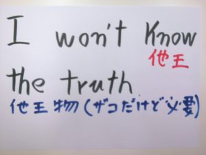 know は他王バージョンでネイティブの心に浮かぶ王です。そのため know のすぐ直後に物体(他王物)が、ネイティブの心に浮かんでしまいます。他王物がきてはじめて「文が完成した」、とネイティブは感じます。この文での他王物は the truth です。