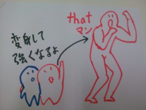 変身する姿は that でも which でもかまいません。絵の thatマン は whichマン でもいいのです。