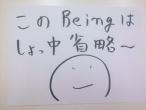 お、サトル君、この Being をネイティブはガンガン省略してしまうことも知ってました。Being 自体に特にテイストないから、もう気にしないのですな。