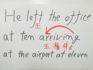 ariived を ing で緊急王権停止しました。これなら王ひとりです。王ひとりならOK、なのが英語という言語です。この文が問題文の間違いを訂正した解答になります。