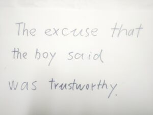 The excuse the boy said the excuse was trustworthy.