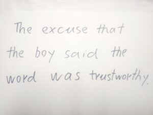 The excuse the boy said the word was trustworthy.