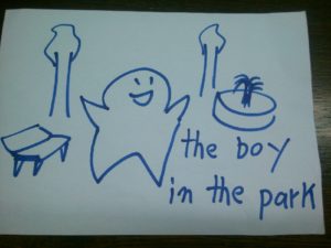 でした。これまでワーグナーミトミが紹介してきた例と違うのは、左の文の the boy の後ろに in the park があることです。ネイティブは物体の後に in や on などの前置詞をつけて、その物体にプラスアルファの情報を付け加えたりします。今回はこの部分が基本通りの合体をした時に、あり?の雰囲気をかもし出すのです。