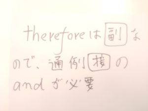 だけで文を接続させてしまっています。therefore のテイストが「それゆえに」 なのでやりがちなんですな、これが。ところが