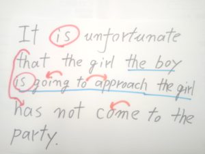 この動詞(王)ふたつ状態ではこの文が爆発崩壊するので、それを回避するため英語ネイティブはこの文を操作していきます。その過程を英語ネイティブ自身は無意識です。無意識の本能が第一言語です。