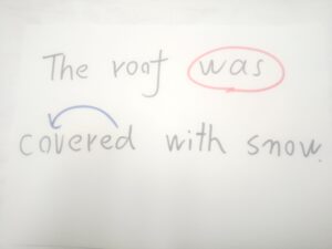 おりょ、英語ネイティブが受動態気分になったようです。やられ物体の the roof が前に出てきました。しかし、やられ物体が前に出てきただけでは、受動態のやられテイストは出ません。そこで be が飛来してきます。