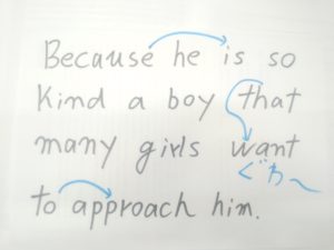 の並びが英語ネイティブの方々の心に浮かびます。もちろん英語ネイティブ自身はこんなこと意識していません。まあ so と形容詞の kind を、本能で離れ離れにしないのですな。