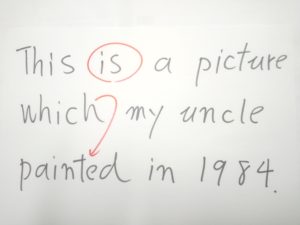 これはテキストの書き換え問題のフリの文でした。my uncle painted と能動態バージョンです。