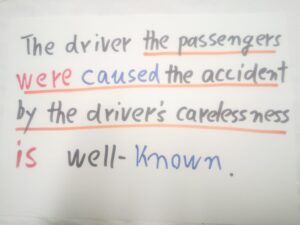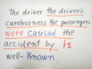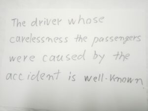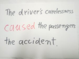 生存不能状態を脱すべく、追加情報文の the driver’s carelessness が前に移動です。