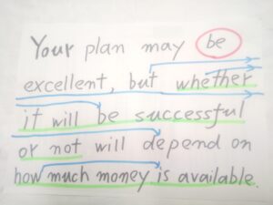 お、接続詞で動詞停止(王権停止)の箇所に緑色のラインが付きました。関係代名詞の追加情報ではオレンジですが、接続詞では緑ですか。この緑ラインの部分は文構造上は