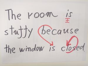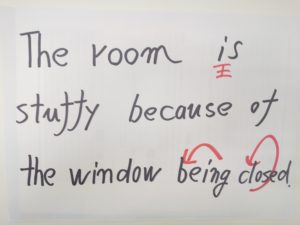 おおっと、OKだったのにワンパターン嫌いのネイティブが beause を拒否、王権停止力のない because of にしてしまいました。王はふたりになってしまいました。