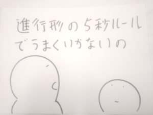5秒ルールでうまくいかない動詞もほんのわずかにあり、注意すべきは die です。(p.53)。あとは rain / snow ですが、これは、It is raining.「雨が降っている(途中だ)」という進行形をみたことがあるはずなので、特に問題ないと思います。