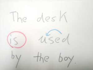 現行英文法における、受動態の文です。