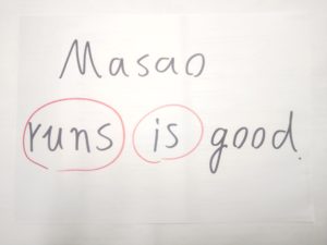 という、ひとつの文に動詞(王)ふたつのとんでもない文です。この文は死滅しています。
