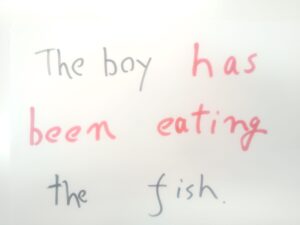 これは現在完了進行形の文です。3つとも赤の着色です。現行英文法ではこうなります。未来完了進行形ではありません。
