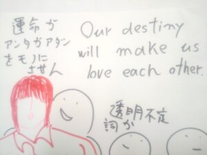 を、サトル君に告げるためだったのですな。通りすがりのあんちゃんがこの世を去っても、だれかひとり、このあんちゃんが発見した英文の真の姿を、後生に伝える人物が欲しいのでしょう。その運命の少年がサトル君のようです。