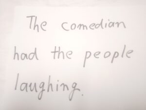 (1)The comedian had the people laughing.