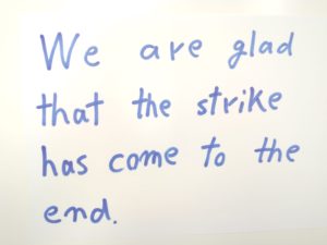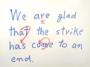 なんで the strike が an end なんだ?と思うところですが、熟語にはかないません。ネイティブの心にそれが浮かんでしまうのですから。