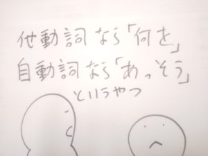たとえば、buy 「買う」って言われたら、「何を?」って聞き返せますよね。だから buy は自動詞です。write 「書く」も、「何を?」って聞けますよね。write も他動詞です。