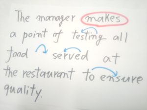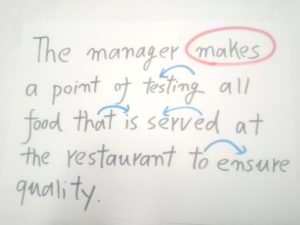 もう makes という動詞(王)太陽 があります。そこにもうひとつ動詞 (王)太陽 が英語ネイティブの心に浮かんだりはしません。