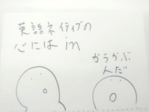 このサトル君の見た文ですが、これは英語ネイティブの方の心に浮かびません。in が消滅してしまっています。