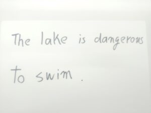 この It スタートのワンパターンを拒否して、最後の the lake を一番前にもってきて、It と置き換えたのが