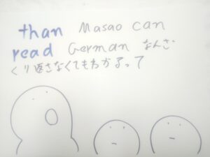 ほほほのほいのほい、今日も英語学習、ブレずに自らの道を行くサトル君です。