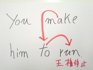 使役王 make から 王権停止力をもつ to がハケンされました。to が run の王権を停止しました。これで王はひとりです。OKです。