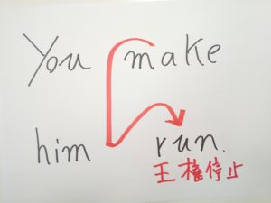 透明to  は見えないけれど、存在しています。王権停止力を行使しています。この透明to を発動させるのが、make などの使役動詞です。これが使役動詞の王権停止です。
