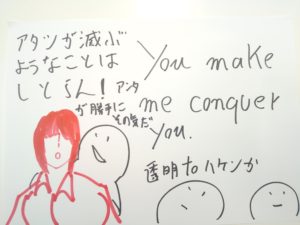 これもサトル君にはおなじみの使役王、あれ?通常は控えめな、さすらいの放浪英語コーチが突進してきました。