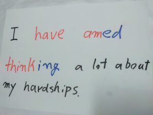 ブルー ed は動詞を過去分詞にしてしまう機能を発揮します。レッド ed は動詞を過去形にしますが。