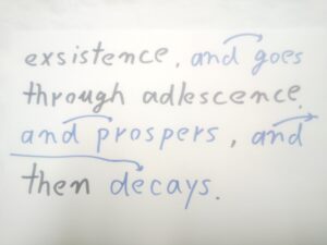 これでひとつの文です。英検1級では短い文です。5行、6行ピリオドなしが通常の長さですから。