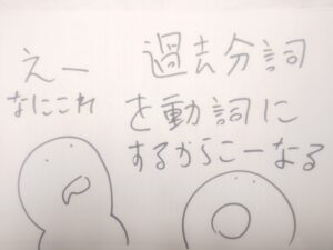 こちらは第1文型。もうこの時点で、日本語ネイティブ英語学習者の混乱が始まっています。現行英文法(天動説英文法)では、過去分詞を動詞としてしまうからです。