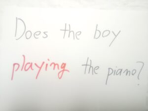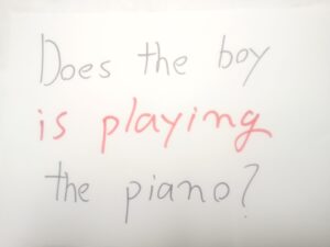 ようやく3人称単数現在の Does をマスターしたか?しないか?の状態で現在進行形を習うので