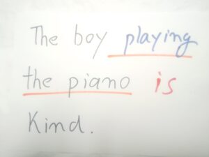 関係代名詞がない文です。この現在分詞の playing は動詞ではない、とされます。現在分詞が