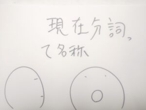 実例を見てみましょう。まずは現行英文法のケースです。うん、これが現在分詞の実例です。いわゆる現在進行形ですな。
