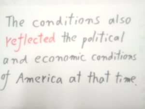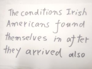 The conditions Irish Americans found themselves in the conditions after they arrived also reflected the political and economic conditions at that time.