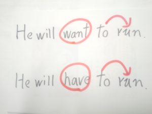 want は動詞で、have to が準助動詞