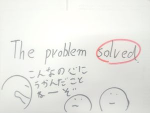そこでしたか!日本英語教育の盲点、ブラックホールです。solve は100パーセント、他動詞バージョンで英語ネイティブの心に浮かびます。(注1)